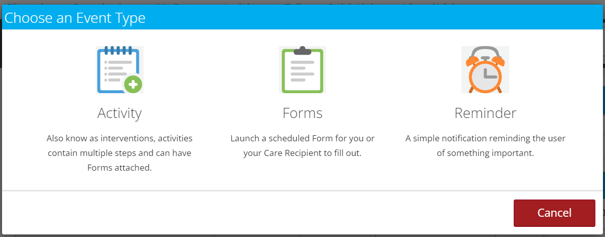 A pop up with three options will appear, select the “Reminder” option on the right-hand side denoted with the clock icon
